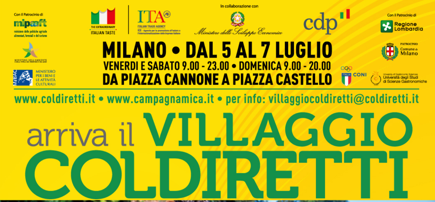 Venerdì 5 luglio aprirà le porte nel centro di Milano, in Piazza Castello e Parco Sempione, il Villaggio Coldiretti.