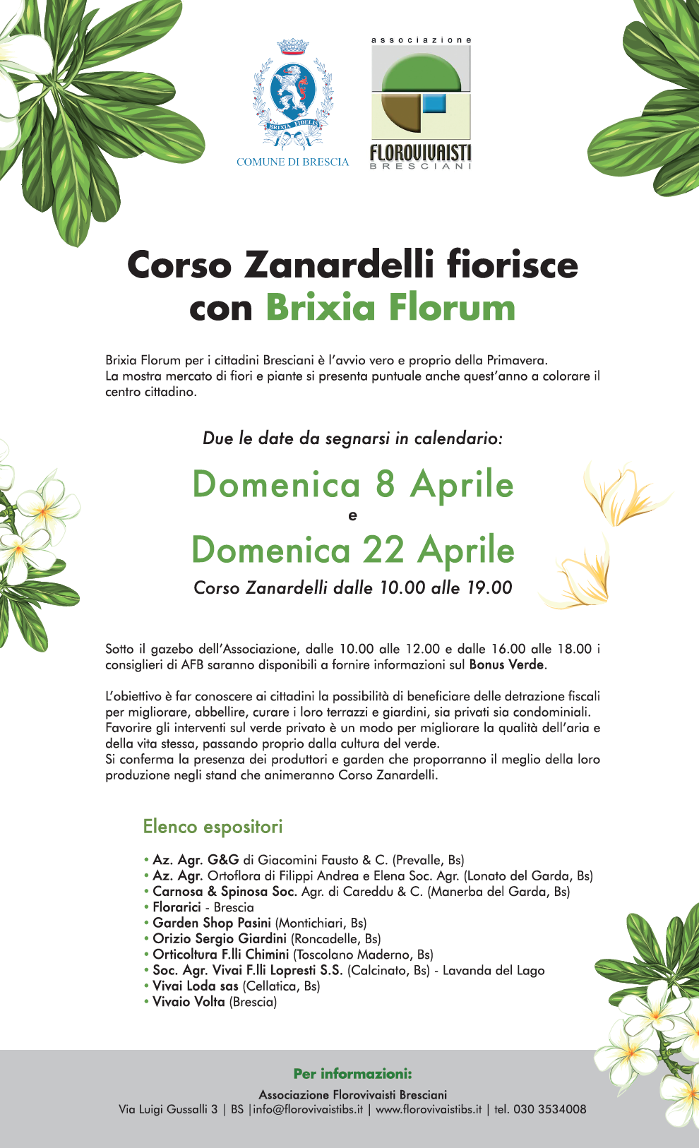 Per informazioni: Associazione Florovivaisti Bresciani Tel. 030.3534008,