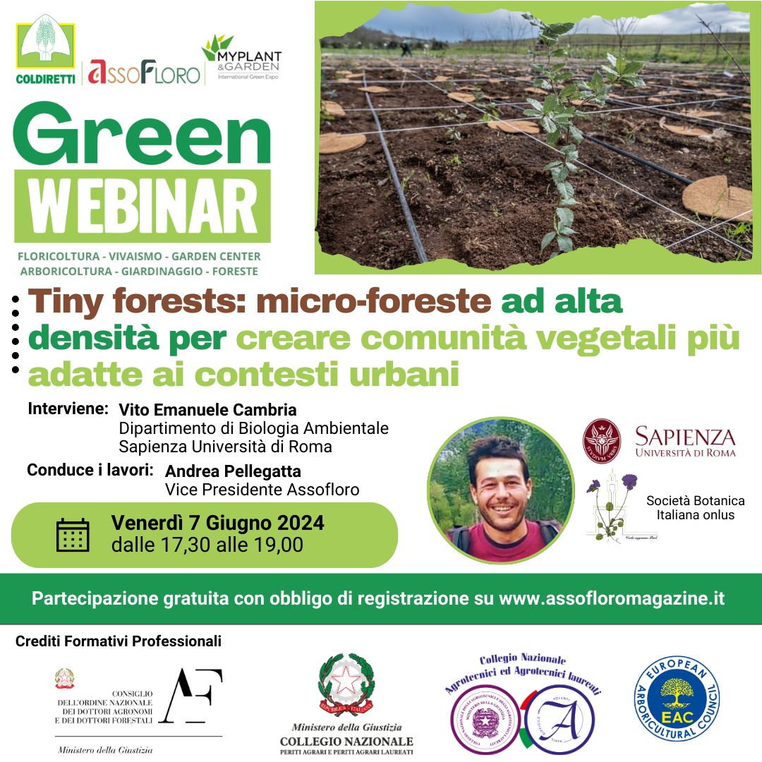 Tiny Forest: Venerdi 7 Giugno GreenWebinar di Assofloro e Coldiretti sul primo progetto sperimentale italiano in ambito urbano che vuole studiare crescita e benefici delle foreste urbane.