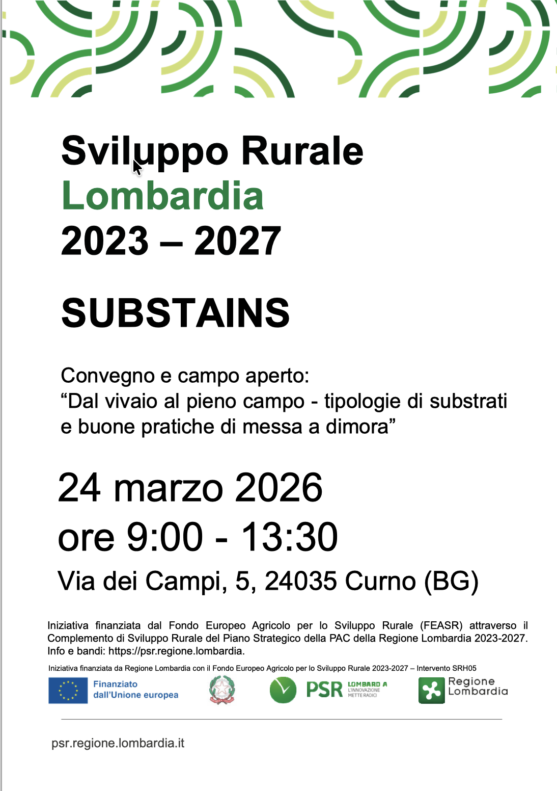 Nell’ambito del progetto, finanziato dal Fondo Europeo Agricolo per lo Sviluppo Rurale (FEASR) attraverso il Complemento di Sviluppo Rurale del Piano Strategico della PAC della Regione Lombardia 2023-2027, Martedì 24 Marzo presso il Vivaio Forestale ERSAF di Curno si svolgerà una visita ai campi sperimentali, preceduta da una conferenza di presentazione del progetto.