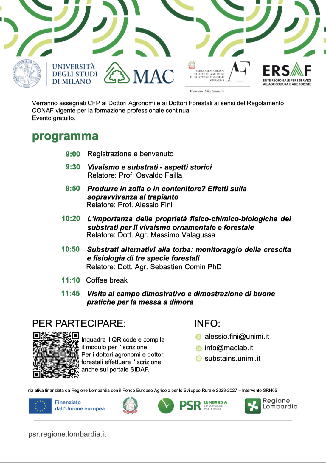 10:50 – Substrati alternativi alla torba: monitoraggio della crescita e fisiologia di tre specie forestali